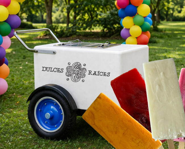 Fresh fruit flavors everyone loves.A sweet moment guests gather around.We roll up with the cart so hosting is "muy fácil."